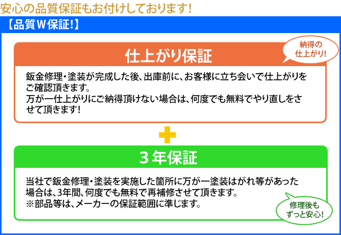 また、当店で実施した修理箇所については、3年間の施工保証をさせて頂きます。